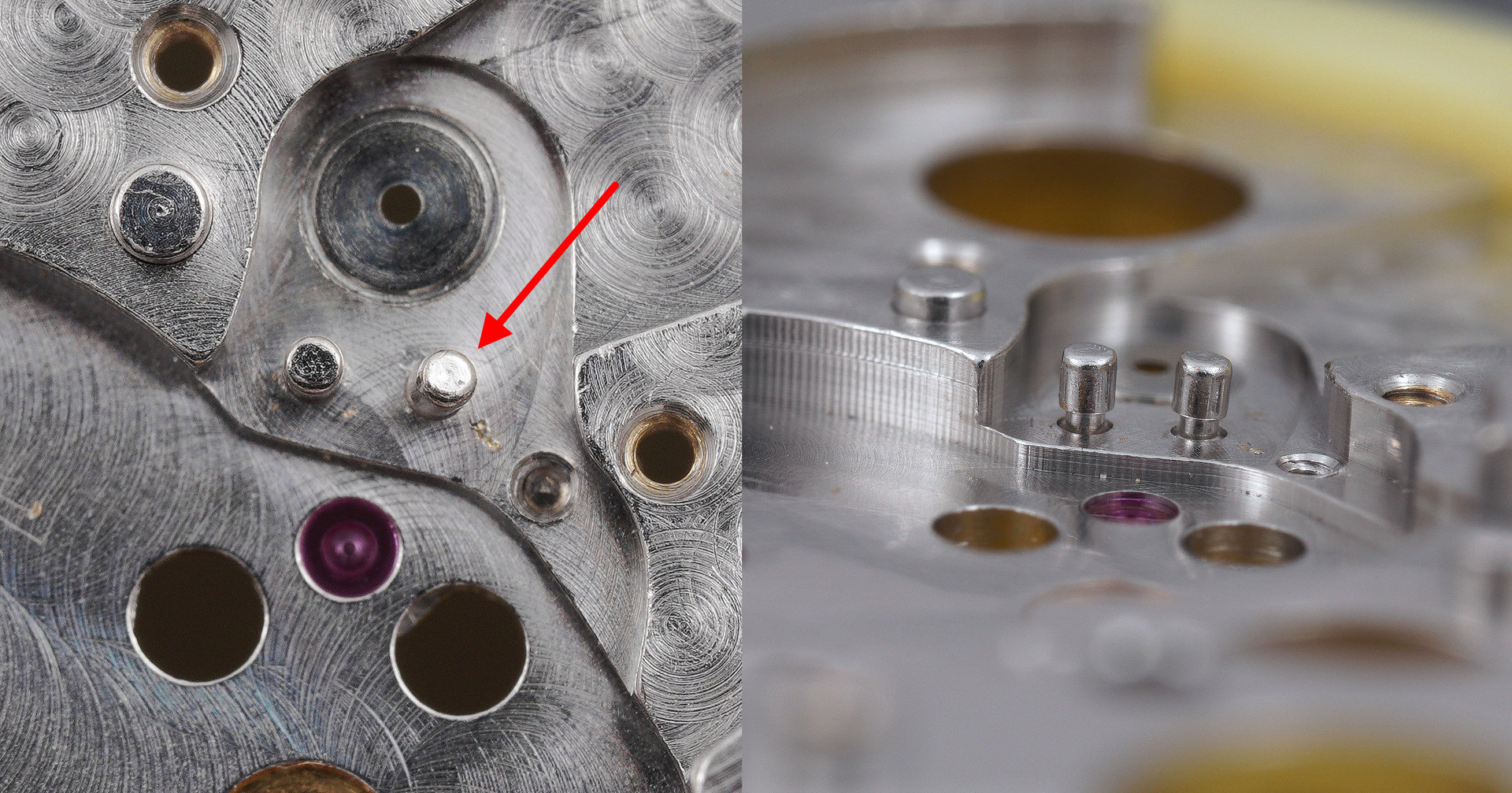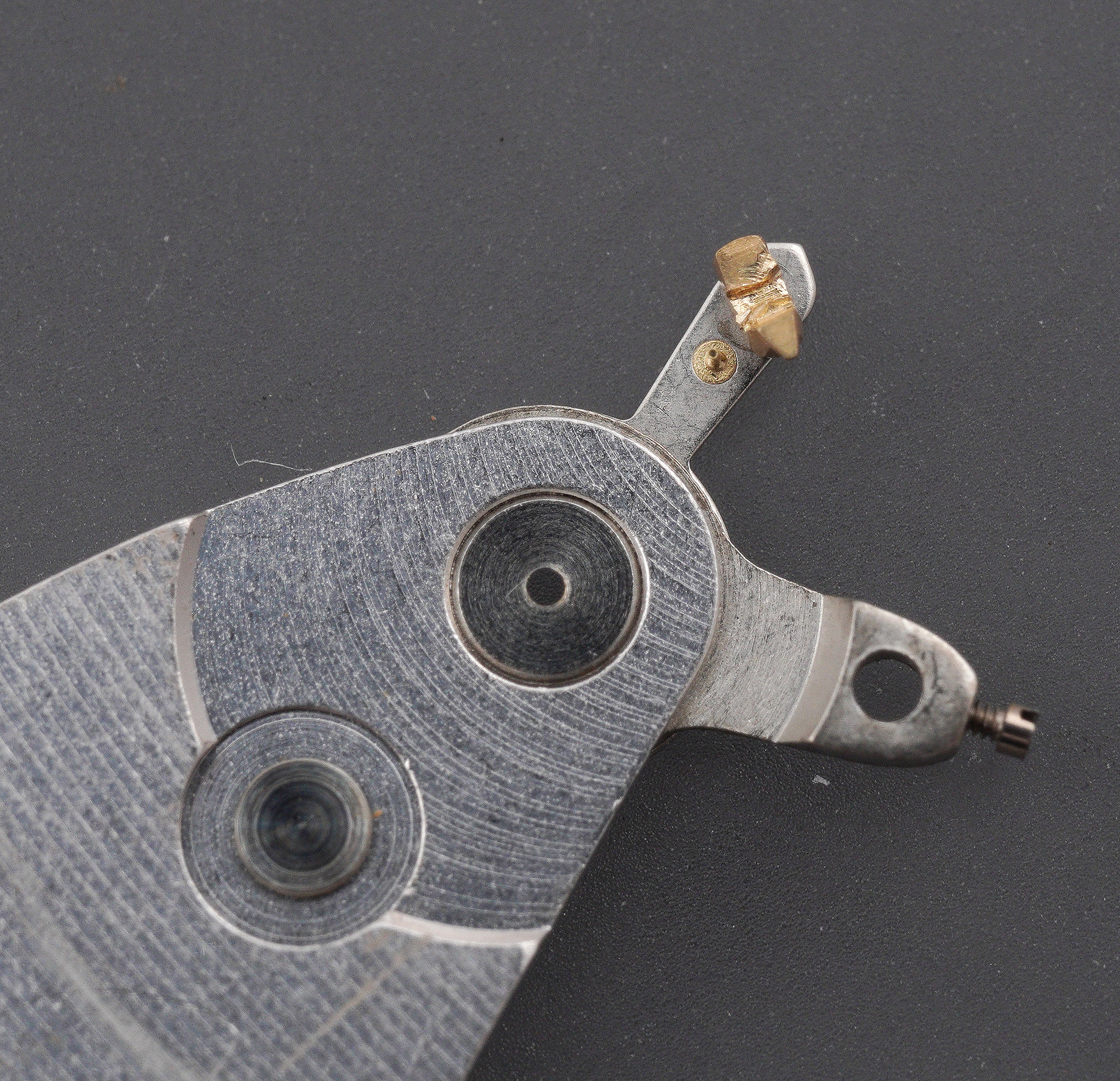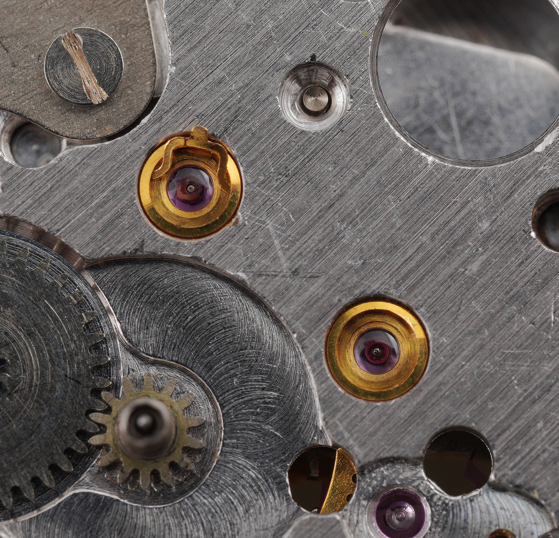 In removing the two Diafix cap jewels, one of the springs came loose, a symptom of it having been removed and refitted a number of times in past services and having lost some of the spring in its step as a result.