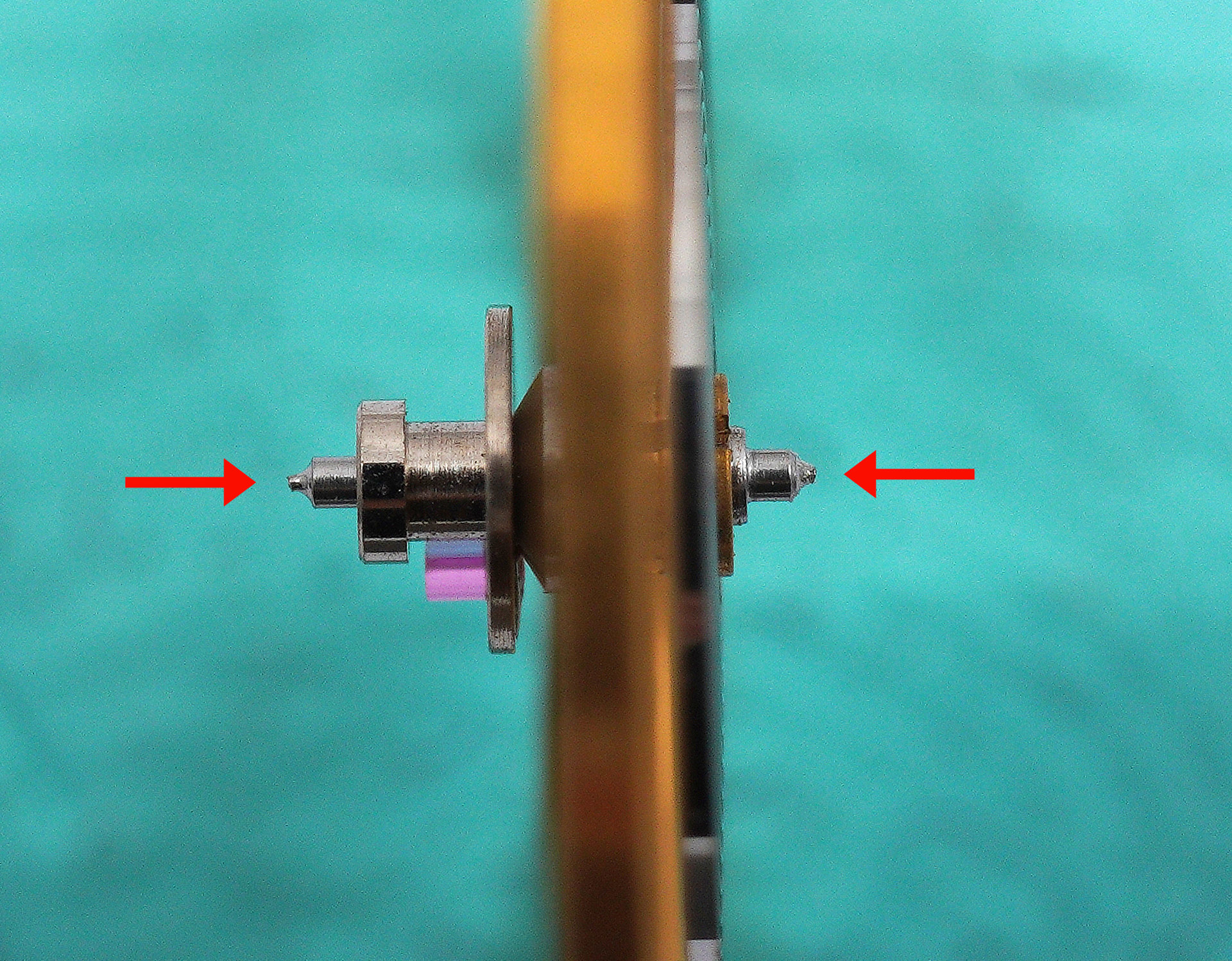 The correction is not quite perfect (see the photo on the right, above) but I didn’t want to push my luck. I do believe we may now be able to progress with reconstruction rather than focussing on rectifications. As would be my customary way forward, I begin with fitting and lubricating (where appropriate) the Diafix and end-piece settings on both the train bridge and the dial-side of the main plate.