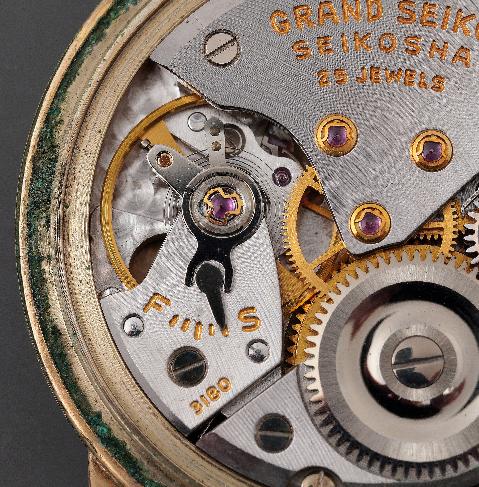 The Grand Seiko used as its basis the Crown 560 movement, itself an upsized evolution of the Marvel. However, the 3180 combined the larger balance wheel and barrel of the Crown with some of the refinements employed in the smaller Lord Marvel such as a moveable stud-holder, fully capped gear-train jewels and a higher, more refined level of overall finishing. Additionally, the Grand Seiko movement added fine adjustment regulation, a jewelled barrel lid and floor and replacement of (all but one of) the jewelled end-piece plates used in the Lord Marvel with sprung Diafix settings. Careful regulation, facilitated by the teardrop fine regulation device, resulted in a chronometer-specified movement accurate to +12 to -3 seconds a day.