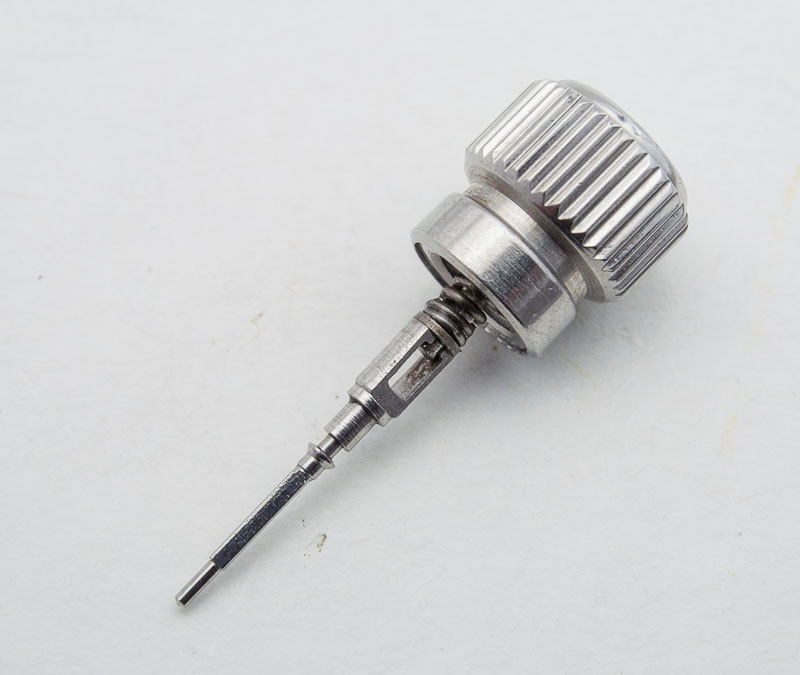 The crown and stem on these dive watches are a two part affair, with the stem moving against a spring, which as you can see looked in a bit of a sorry state