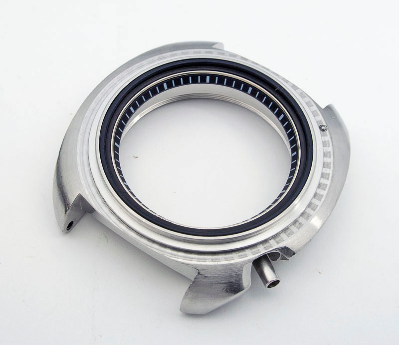 A thorough clean to the case is all that is required, the case in such nice original condition that any refinishing would really undermine the spirit of this project. Here’s the mid-case with chapter ring and crystal gasket ring fitted