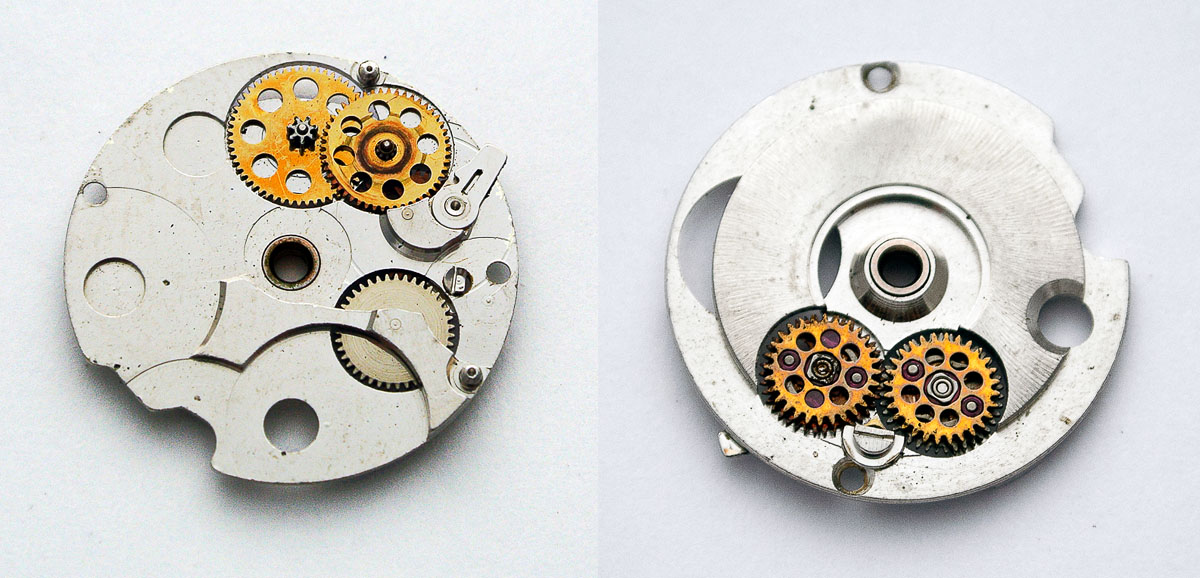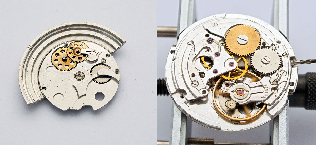 Removing the auto winding mechanism provides a better view both of the movement proper but also if the complexities if the autowinder itself: