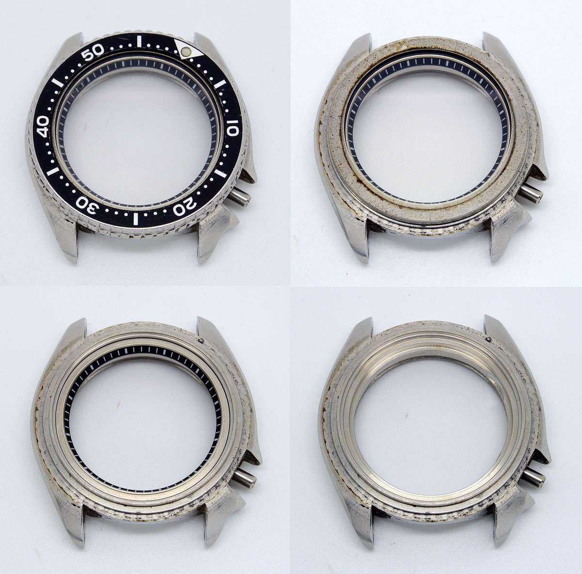 I don’t think these needed much more than a careful wipe with soft tissue wetted with lighter fluid and/or watchmaker’s putty. If you want to see a more extreme hands makeover, check out the most recent entries on the 6309-7040.