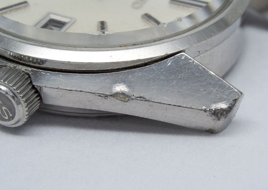 On the subject of the case, I considered three possibilities: 1) Leave it be, and let the scars serve as a reminder of my folly 2); employ an expert to laser weld and refinish the case; 3) source a replacement case. Option 1), I dismissed out of hand: I do not need reminding thank you very much and I knew that if I left it in that state, I would probably not wear it, defeating the point of all the effort that had been expended up to this point. Option 2) I explored, going so far as to contact a company in Bristol who do laser welding and have a lapping machine but the case shape is too complicated and they declined (I suspect the cost might have ruled this out in any case, but worth a try). And so, I was left with option 3). In all the time I’ve trawled Yahoo Japan auctions, I’ve never seen a 45xx-7000 case for sale and so the only solution was to find a cosmetically challenged, preferably non-functioning complete watch whose case was unpolished and in as good a condition as possible. The dated 4502’s tend to fetch strong money, even with flaws but the no-date 45-7000’s sometimes sneak through in poor condition for lowly amounts. One such caught my eye over the Christmas break but I was distracted at the critical moment and missed my chance to snag it. So I had to trawl again for a suitable candidate and eventually my patience paid off with a 45-7000 whose dial was damaged but whose case looked very nice indeed:
