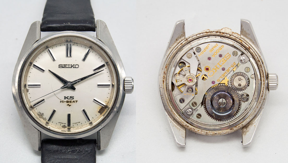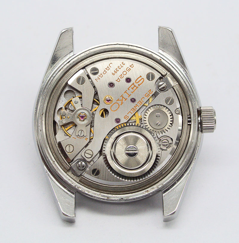 The crown, stem and caseback all come from the original 4502-7000 and together, we have a working and presentable watch once more.