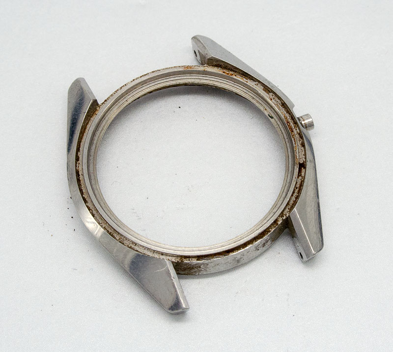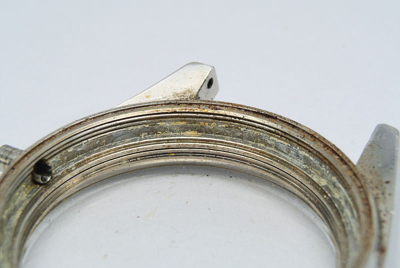 The same stuff is plastered all over the movement and I don’t relish the prospect of removing it given the elbow grease I had to expend on the case. In other respects though, the case is excellent, largely free of corrosion, with sharp lines and with no major dings.