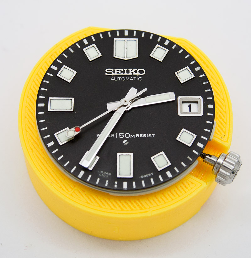 And finally, we replace the 6146 date dial guard, complete with its redundant day jumper, with a dial guard from a 6105.