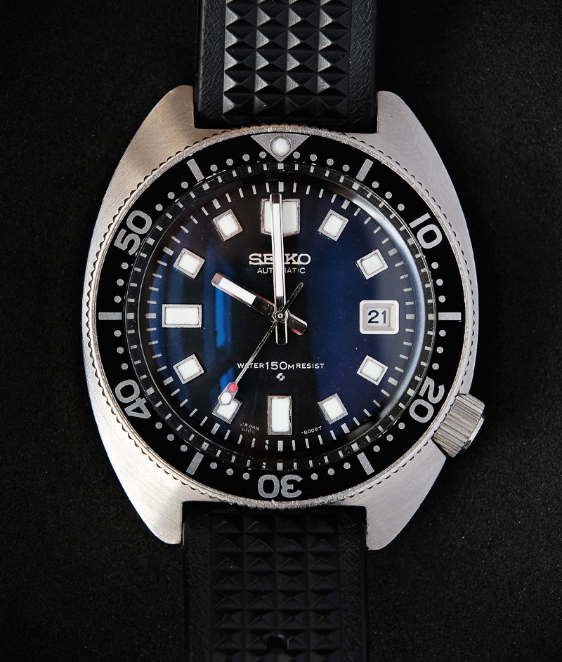 Those of you thinking I might have auctioned off my children to aid the acquisition of a 6159-7001 are sadly mistaken. Instead, I’ve come up with a strategy to inject a bit of the blue blood from that 6159 into our blue collar diver’s watch, the 6105-8000.