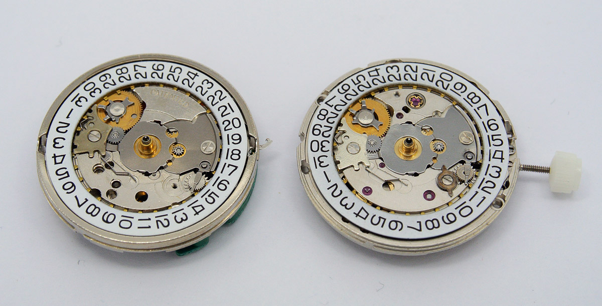 The success of such a transplant hinges on a number of requirements: 1) that the caliber diameter and stem height of the two movements are identical. 2) that the dial feet positions are compatible 3) that all three hand hole sizes are identical between the two movements, 4) that the crown positions on the donor and receptor watches are the same and 5) that there is sufficient case back clearance to accommodate the rotor.