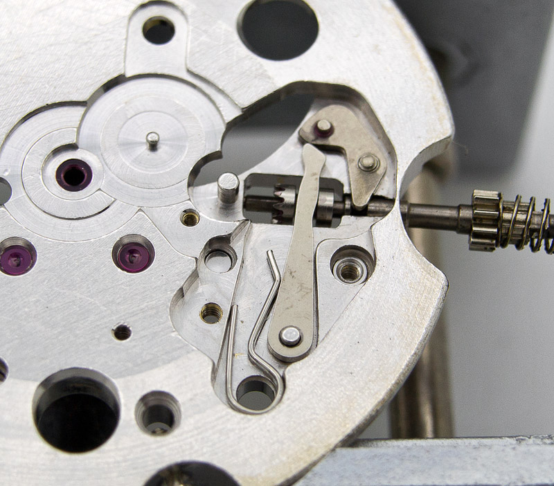 Next, the clutch lever and its spring, again a slightly perilous operation until the setting lever spring can be screwed into position.