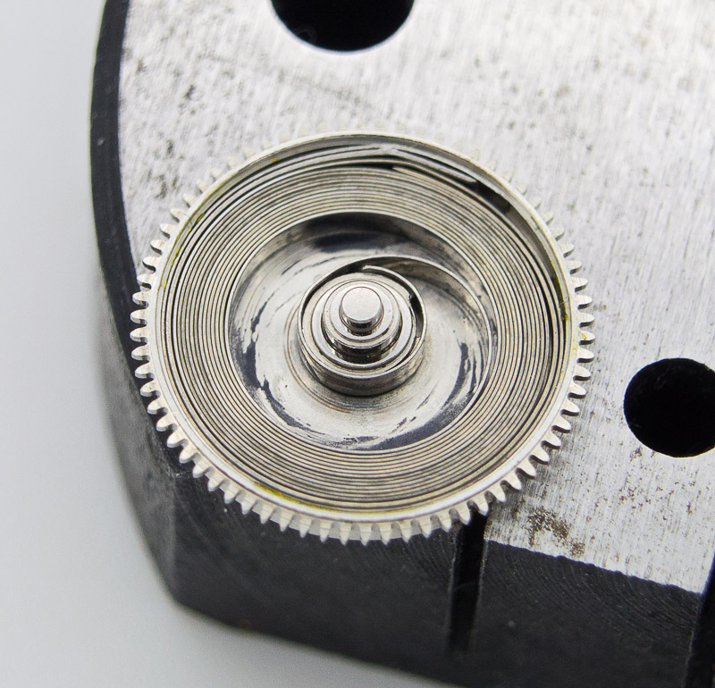 With the movement parts clean, I start proceedings as usual with the mainspring.