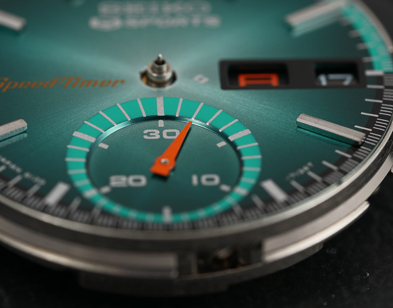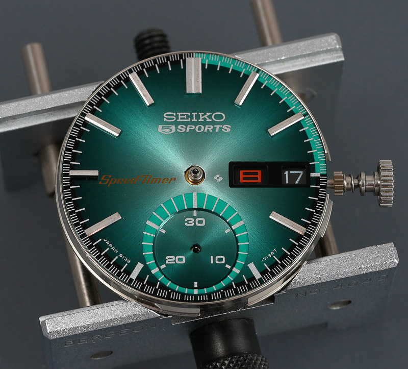 Satisfied that the sub-register hand is correctly aligned and ticking over nicely every 60 seconds, the remaining hands can be fitted. The profiled sweep seconds axle means that there are no real worries about alignment when refitting the seconds hand other than to make sure to press in the reset pusher when fitting the hand (aided by the dedicated movement holder).