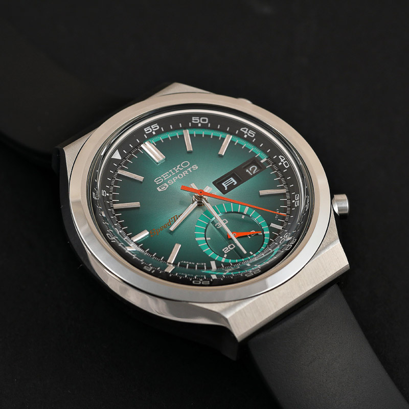 Acid yellows, burnt and vibrant oranges and dazzling blues all featured. And greens, deep turquoise, shimmering bluebottle greens. Take all of this, add a dash of Japanese quirk, and we dial up the Seiko 6139-7060.