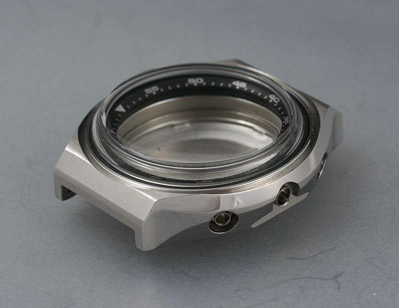 With the movement set to one side, ticking happily away, I can turn my attention to the case. Some time ago, I bought a handful of Seiko old stock sample cases off Ebay, intending to use one of the cases for the ‘A little bling is no bad thing’ project a couple of years back. The cases came with their case backs but without bezel, pushers, glass or any other fixtures and fittings. One of these mid cases was a 6139-7060, fitted with a horseshoe case back and with a serial number dating from 1974. With a new bezel sourced some months later, all I needed was a project with which to use it. So my intention is to remove the inner bezel, spring, spacer and crystal gasket from the old case and transplant them to the new case together with a new crystal courtesy of Sternkreuz.