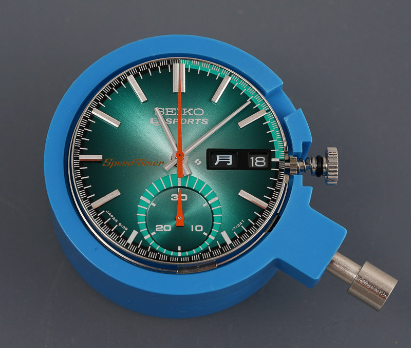 Time I think to introduce our contender, a Seiko 6139-7060 automatic single register chronograph dating from June 1975, fitted with the 21 jewel version of the 6139B.