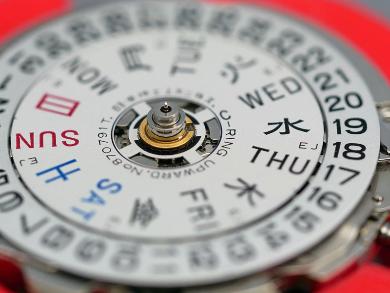 The movement, by the way, ticks along nicely with a battery pressed into place and so we can move on and complete the calendar, pausing once more to admire the impressive presence of that hour wheel poking though the day disk.