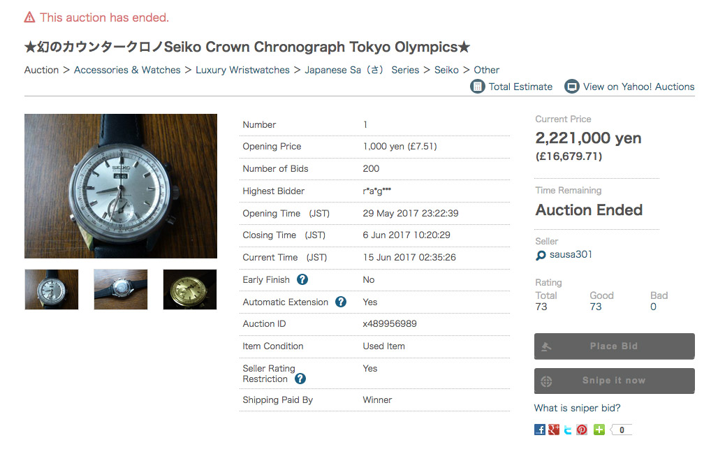 Mind you, this one looks a bit of a bargain compared to the boxed black dial version that sold on Yahoo back in December for a staggering ¥3,000,000.