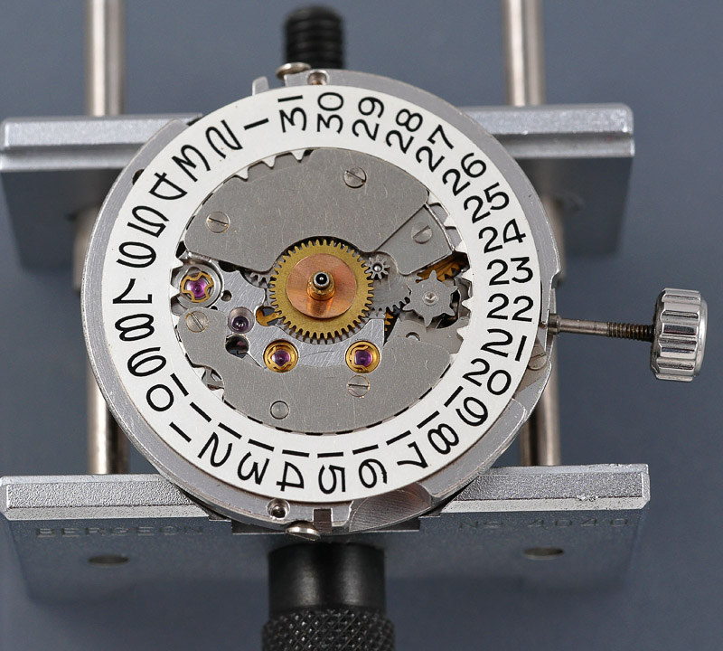Assembling the calendar side is entirely uneventful and so I’ll skip to the point just before fitting the guards for no reason other than to admire the date wheel. I think the numerals are a work of art, the 4’s particularly flamboyant with the arched connecting line between horizontal and vertical lines. Calendar 4’s are to Seikos that open sixes are to vintage Rolexes.