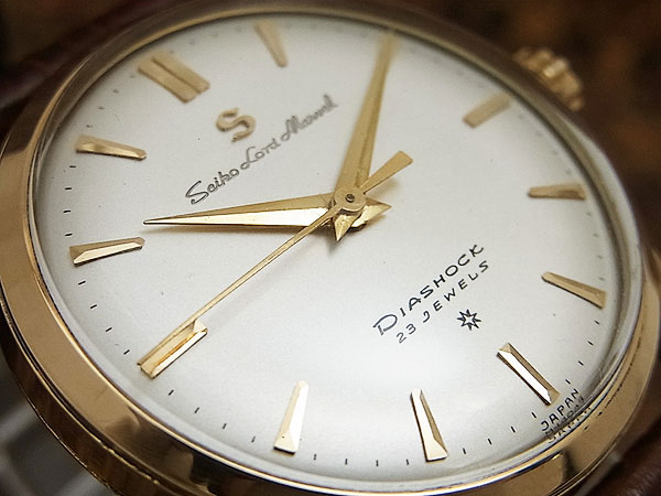 The romantic overtures that led eventually to the conception and birth of the Grand Seiko line were played out through the development of the Seiko Marvel, produced from 1956 and featuring Seiko’s first watch movement designed and produced in house from scratch. The Marvel was intended to compete globally not only in terms of performance but also in terms of reliability and ease of maintenance. It quickly sired the Lord Marvel, featuring a higher jewel count version of the same movement, with the Lord Marvel’s aspirations to distinguish itself from the hoi polloi sign-posted externally through its fine detailing, engraved dial text and features such as gold filled cases.