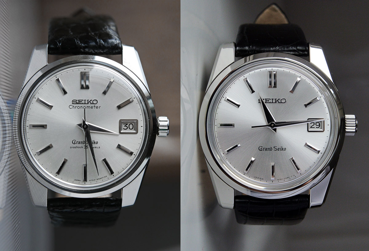 All of these ruminations bring us to the subject of this present entry: a brief comparison between the Grand Seiko Self-Dater from 1965 that featured in the previous post, and its 50th Anniversary tribute, the SBGV009. The former a 52 year old watch powered by a low-beat manual wind chronometer mechanical movement; the latter a relative new born, powered by a state-of-the-art, thermo-compensated quartz movement.