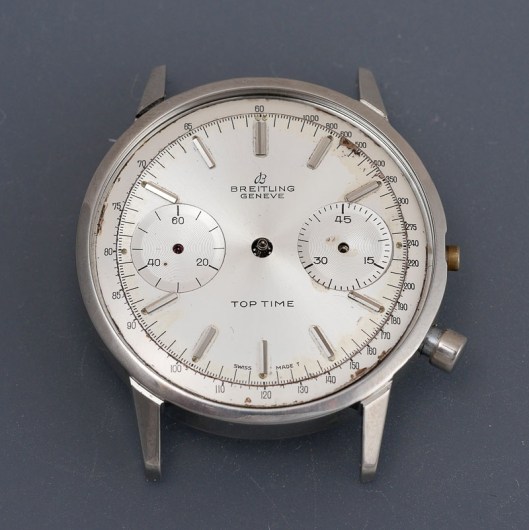 My consolation prizes included, notably, a somewhat industrial-looking watch demagnetizer, that has since turned out to be brilliantly effective and now indispensable; and secondly a partially disassembled, water-damaged 1960’s Breitling Top Time, missing a number of key parts, but still sufficiently charismatic to excite a momentary uplifting in the spirit associated with the prospect of a tangential diversion into the unknown and unfamiliar.
