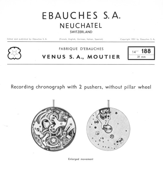 By the time of the introduction of the Top Time, Breitling had long-since transitioned from in-house to third-party movements, with the Chronomat and its successor Navitimer using Venus 176 and 178 pillar wheel chronographs, respectively. The new Top Time models employed the Venus 188 cam lever chronograph movement, but within a year or two, the Venus movement was phased out in favour of the Valjoux 7730. This change was the result of Valjoux having swallowed up Venus with the Venus 188 design then transferring more or less unchanged into the Valjoux range and rebadged as the Valjoux 7730. This brings us nicely to an initial appraisal of my serendipitous acquisition.
