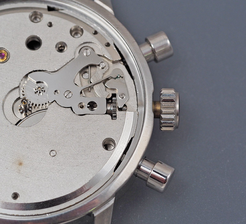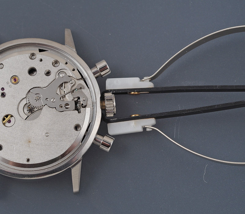 If you are starting to think we are getting dangerously close to finishing this one, you’d be right! Happy with the sizing of the stem, it is time to fit the dial and register hands and test the functioning of the chronograph.