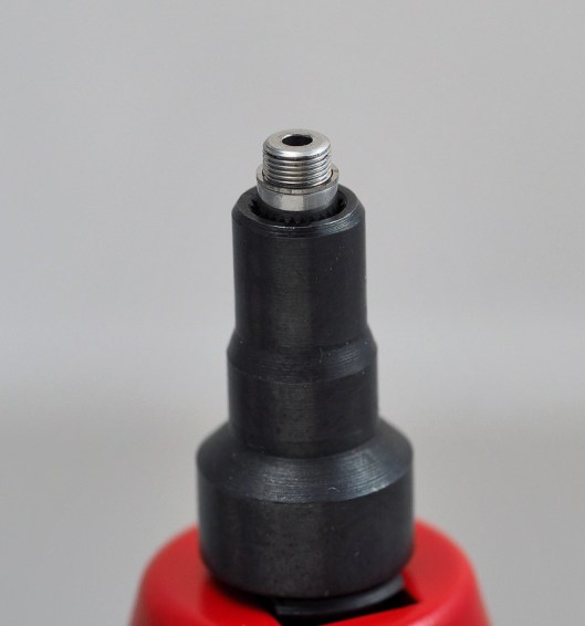 Test-fitting the new pusher provides a view of the extent to which it protrudes into the case when it is in its undepressed position.