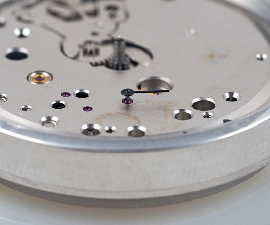 You’ll notice too that the seconds hand is fitted. I had spent quite some time getting the height of all three hands right to avoid the seconds hand fouling. Satisfied that all runs true, I can now check that the seconds hand stays on its post when the chronograph is reset (which it does).