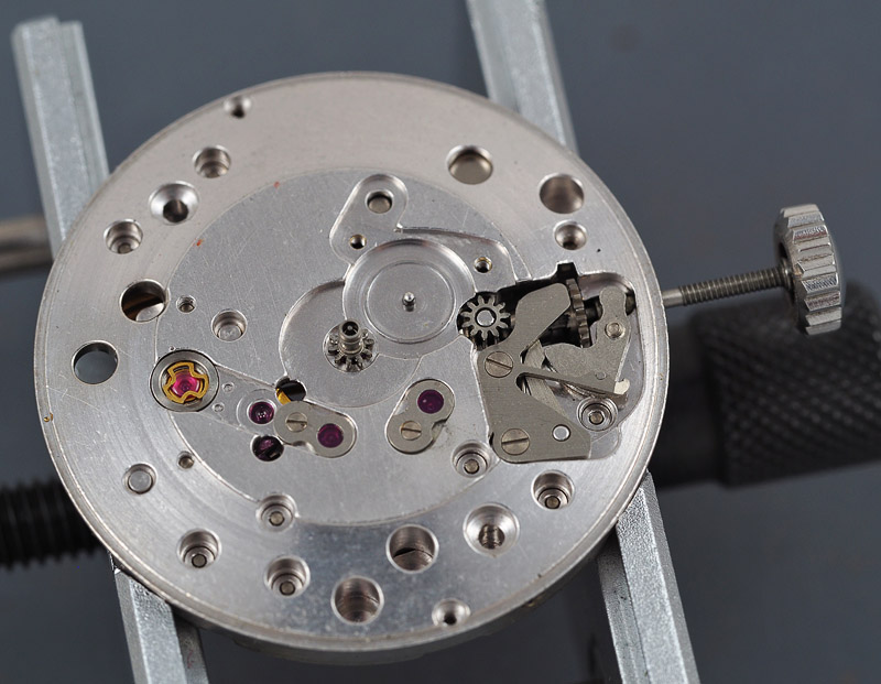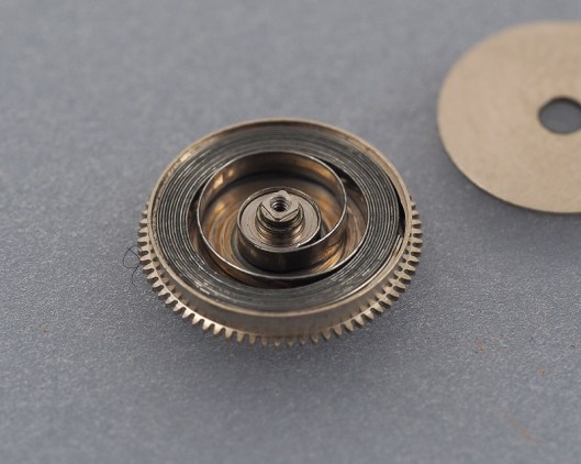 The Diafix settings looked pretty much virgin to me and consequently, the springs played ball in not detaching themselves from their settings. The first signs that this watch had previously seen the attentions of a watchsmith, was revealed when opening the barrel.
