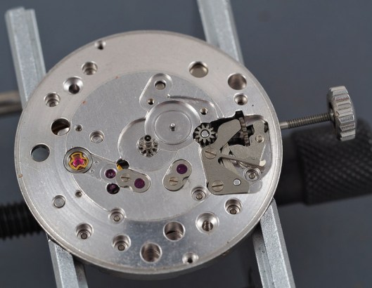 Time for one last look at the movement held securely in its case ring before fitting it to the cleaned case.