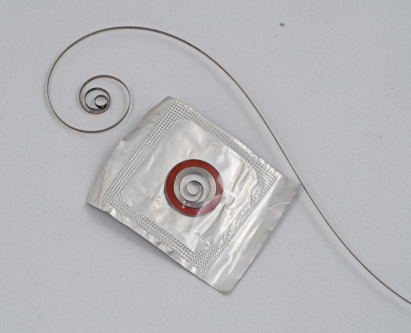 Unfortunately, the diameter of the spring when contained within its packaging ring turned out to be ever so slightly too large for the barrel and so I had to remove the spring from its ring with the objective of then fitting it into the barrel using my mainspring winder. However, the spring requires a left-handed winder to fit with the correct orientation into the barrel and my right-handed winders were not able to gain purchase on the eyelet in the hook of the mainspring. So I wound it into the winder drum right-handed and then fitted the spring back into a smaller diameter packaging ring; this then allowed me to press the spring home into the barrel in the correct orientation.