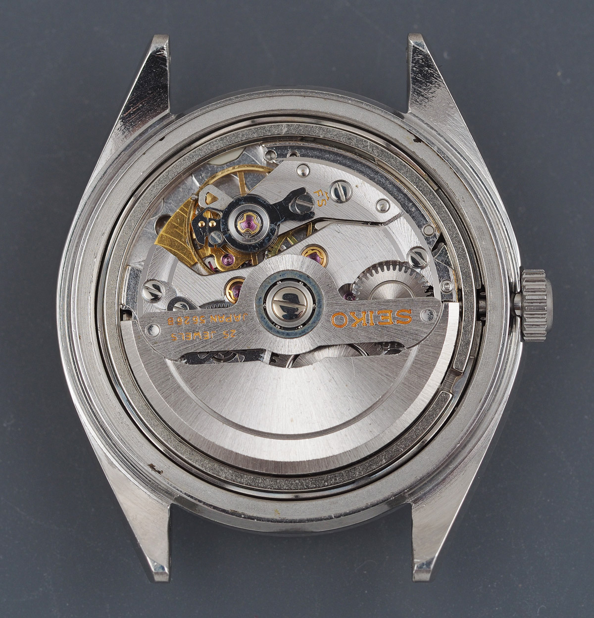 In attempting to source a replacement pallet, I had trawled my usual sources and come up blank and so resolved instead to buy a tatty donor watch from which I could farm as many parts as to make its purchase economically viable. More or less contemporaneously, a watchmaker friend in the Netherlands offered to see if he could track down the part for me from his sources. While I waited to see if he could come up trumps, I placed a precautionary bid for a water damaged King Seiko 5626-7000 and won it. The description of that watch suggested the watch was a runner and I was therefore hopeful that it might potentially yield a pallet fork.