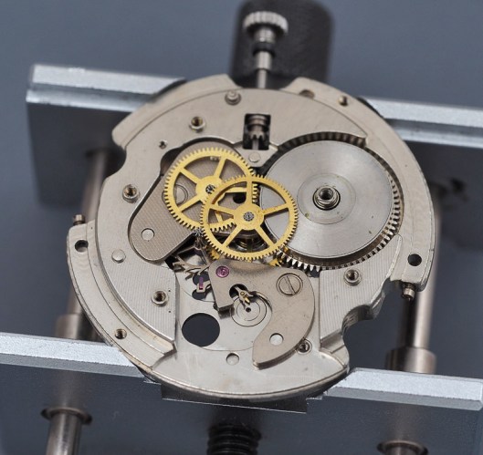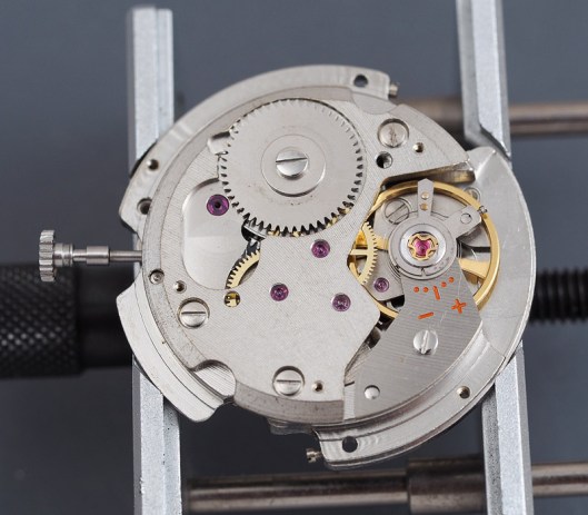 The train wheel side of the movement threw up no surprises and as we’ve dealt with the balance side of the 66 series before, I’ll just pause to survey the gear train with barrel bridge removed.