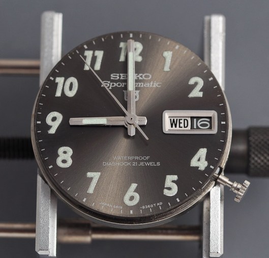 Tipping the movement out of the case provides an opportunity to take a proper look at the dial and hands.