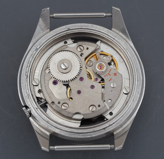 If this watch had been made in any decade other than the 1960’s it would be easy to assume that the militaristic design was a pretension but the 1960’s were a decade in which watch design was far more pragmatic, a decade where watches by and large were bought to serve a purpose rather than just project an image. It is also clear to see that this watch belongs to the same family of watches shown in the opening photograph and so we might reasonably assume that any of these watches could interchangeably have been issued through the support office supplying equipment to military personnel.