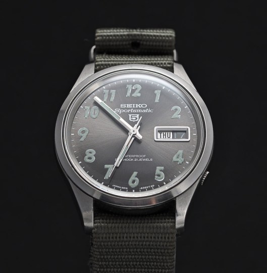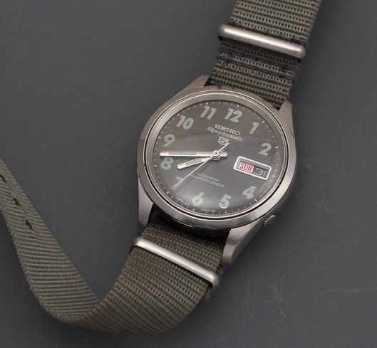 This is not a post about a military watch. This is a post about a watch that skirts around the periphery of circumstantial associations of military-inspired Seiko 5’s with the Military Assistant Command in Vietnam in the 1960’s. There is a certain amount of pretty convincing evidence that the Counterinsurgency Support Office based in Okinawa at that time supplied ‘sterile’ Seiko 5 watches to special operations units conducting covert operations during the Vietnam War. Those watches all have a common design language of dark sunburst dials with large painted luminised numerals fronting robust mainstream Seiko automatic movements featuring day/date calendar complications and fitted to generously sized waterproof steel cases with recessed crowns at the 4 o’clock position.