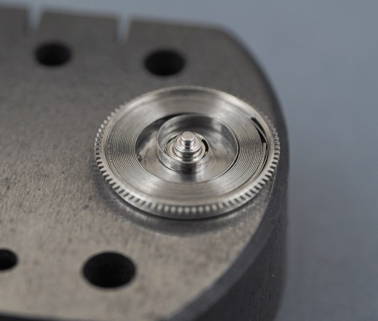You should be able to discern that the 6139 escape wheel pivots (left) are longer than those of the 6106 (right) and that there are some other subtle differences in the profiles of the broader parts of both pivots. This does not mean that the other escape wheel could not be called into service as a temporary fix but the pivots may not properly engage in the jewel holes in all positions. For your amusement, here’s a short clip of the gear train in motion with a couple of clicks of power wound into the mainspring: