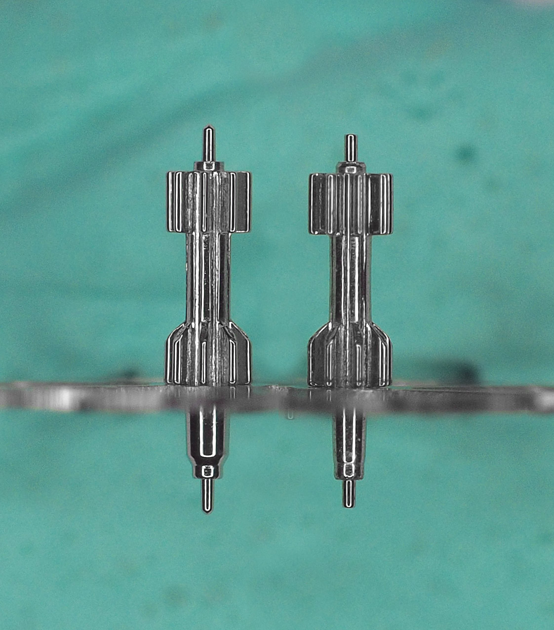 While we are on the subject of escape wheels, I have noticed that there appears to be a degree of received wisdom in circulation on the internet that an escape wheel from the 17 jewel versions of the base movement family could serve as a workable substitute, the availability of 6139 escape wheels being sparse to say the least. I believe I am now in a position to dispel any suggestion that the part number 251611 as fitted to 17 J versions of the 6105, 6106 and 6119 is essentially the same as the analogous 251612 part as fitted to the 17 J 6139B. The photo below is a merging two, one taken of the 6139B escape wheel pinion (left) and one of the 6106C escape wheel pinion (right).