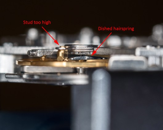 With it in this state the amplitude collapses dial up and the watch runs fast but dial down the amplitude is ok and the watch runs at an even rate. This would explain the issue I was having with the original mainspring although in that case, the dishing of the mainspring appeared not to be related to the position of the stud. A quick adjustment to the stud position and I believe we may finally have banished all of the gremlins.