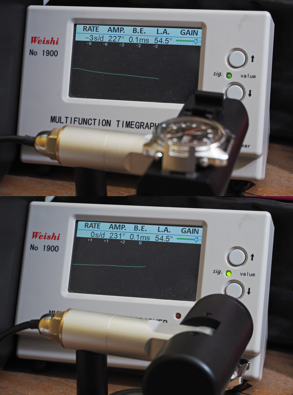 With this new mainspring fitted, we seem to have considerably improved amplitude dial down but it is still struggling dial up and to make matters worse, runs very fast in this position.