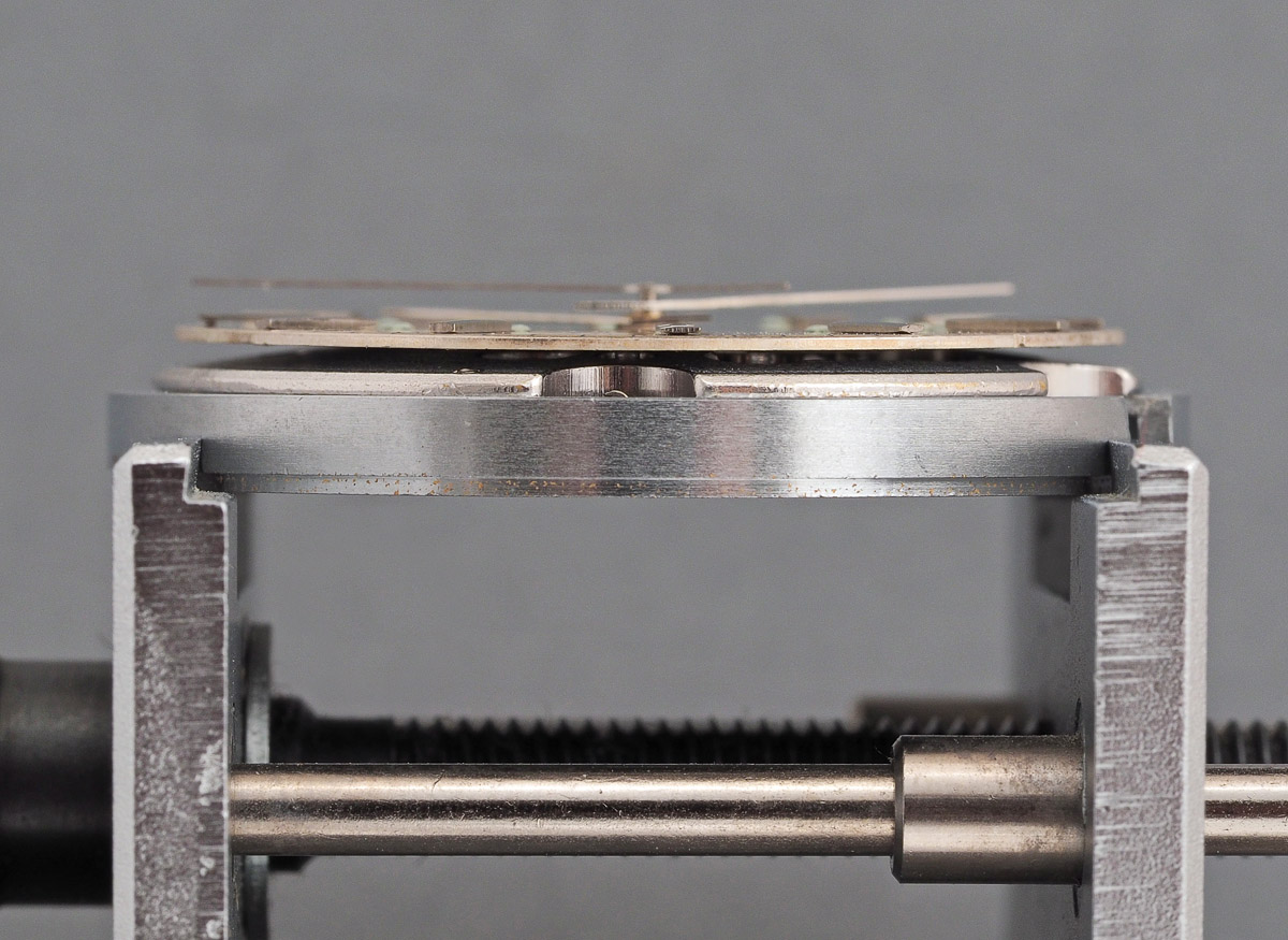 The scene is now set to reunite movement with case but first we need to refit the case ring that serves the dual purpose of providing a stable platform for the movement as well as defining the inner circumference for the correct seating of the case back gasket.