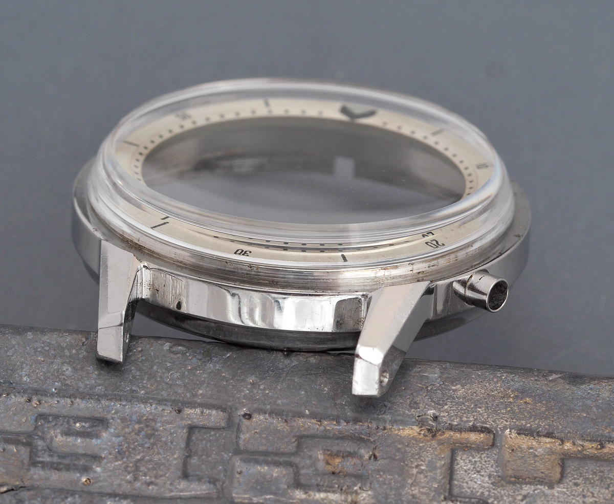 This is the third example of this model to have found its way into my hands. The first was an unworn example that I bought on the lead up to celebrating my half-ton and which has sat since, frozen in aspic waiting for me to freshen up its innards. The second was a spectacular star burst dial example with black inner bezel whose case was suffering from corrosion but which cleaned up nicely. And now we meet the third: a facsimile of the first but in patently used condition and minus the original bracelet.