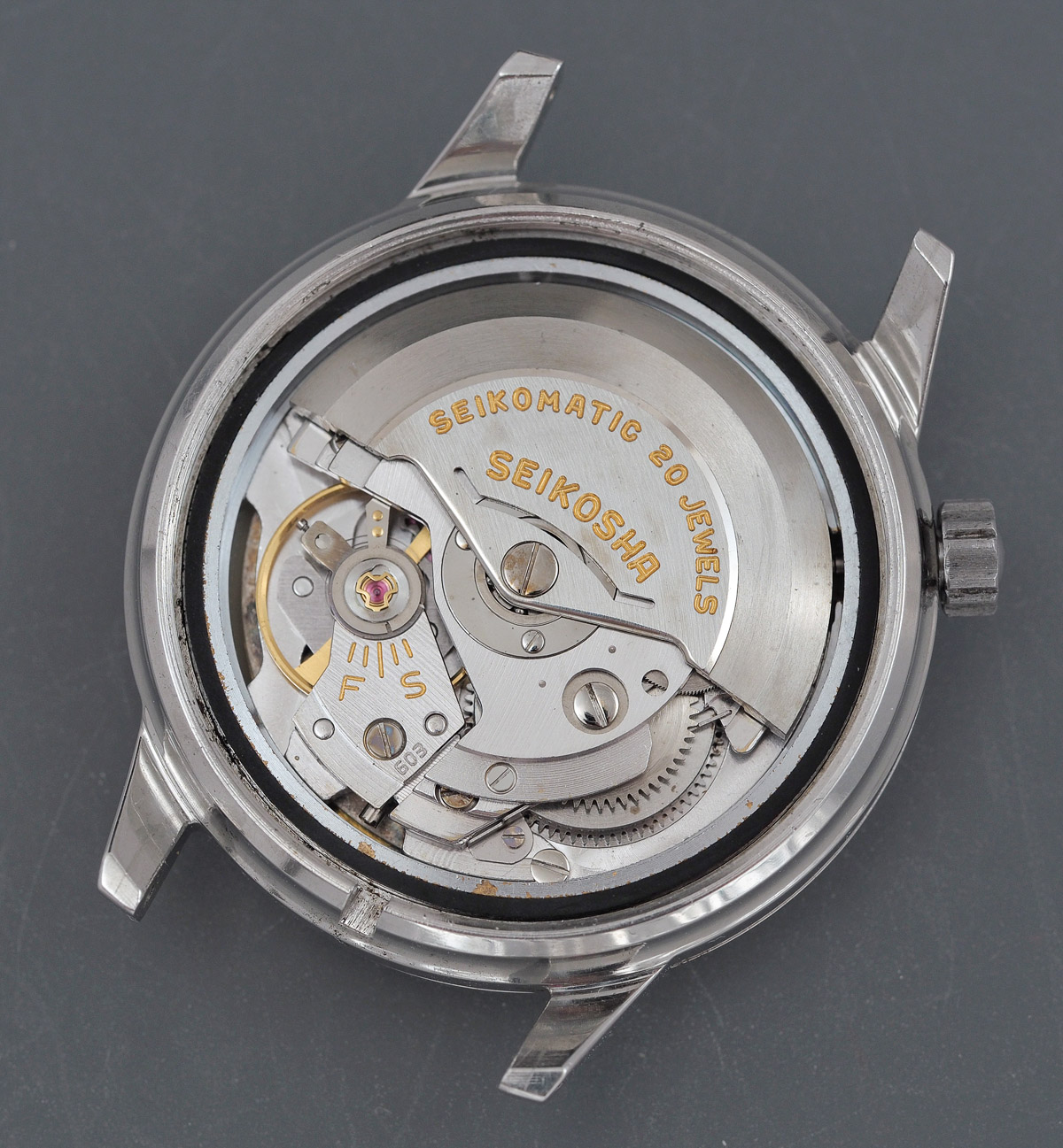 As we saw last time, the case back on these watches comprises two parts: a press-fit back secured in place with a separate screw down ring.