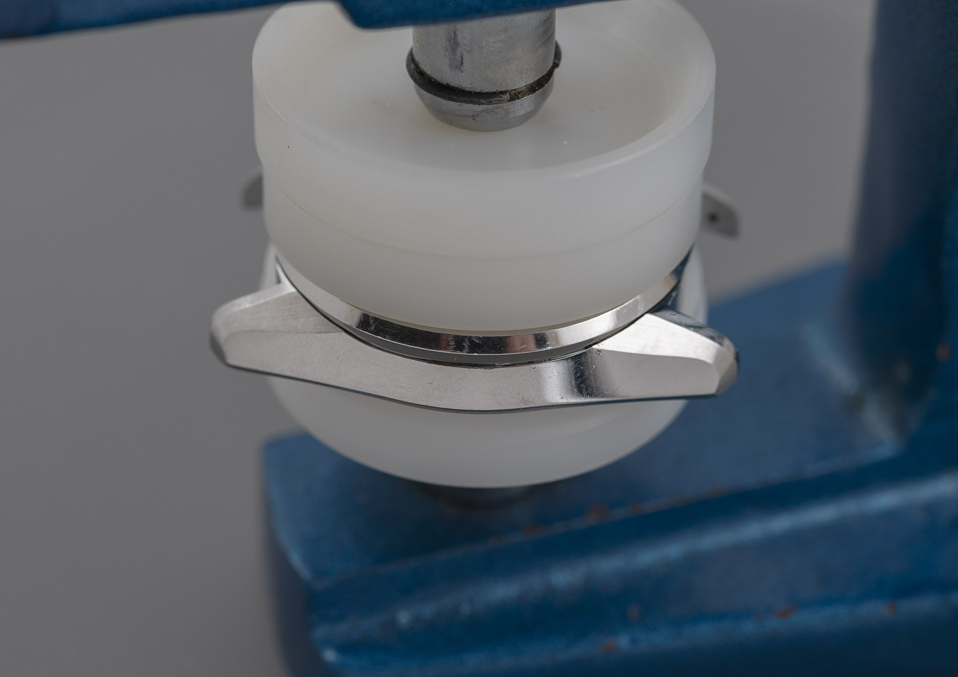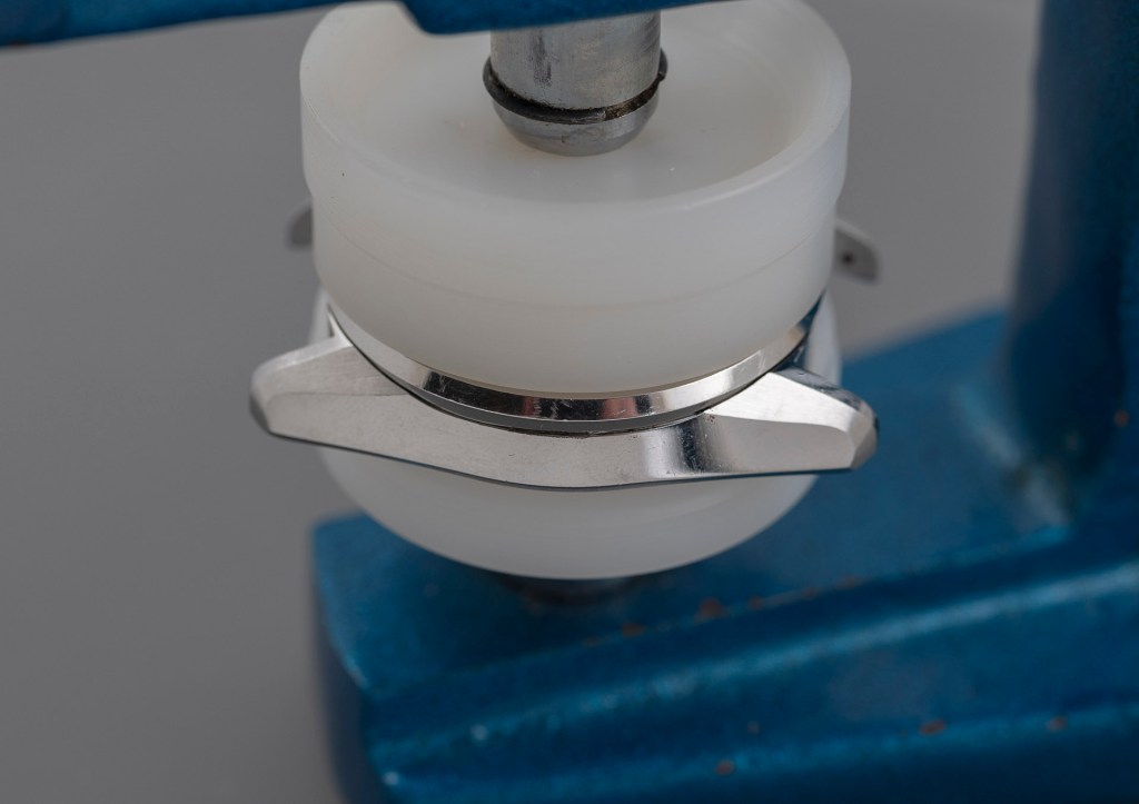 We complete this operation by placing the bezel/crystal retaining ring around the crystal and pressing home with the crystal press.
