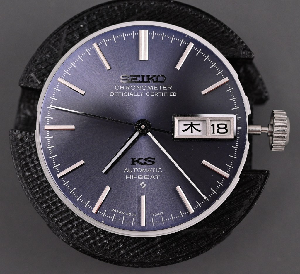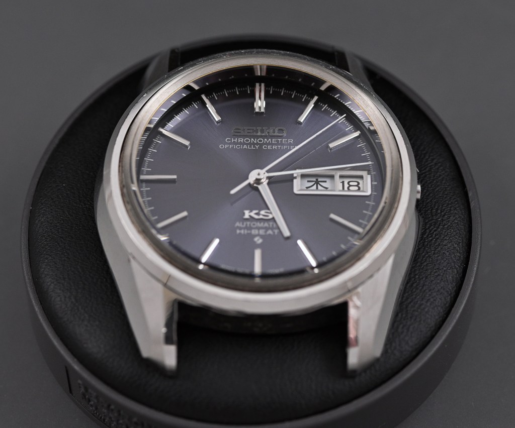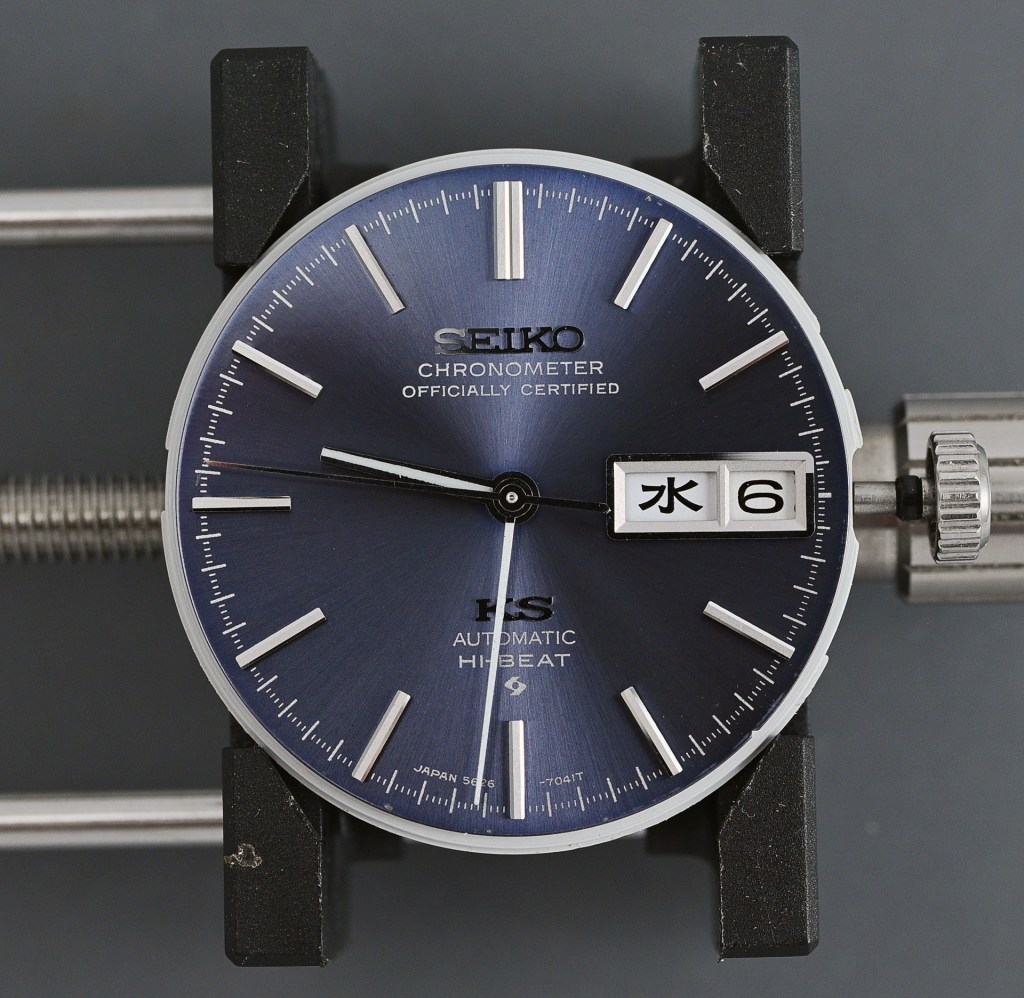 I own two examples of the 5646-7041, both with blue dials and both with serial numbers dating them to 1974. The slightly older of the two I have owned for several years, the younger, just a couple of months. For reasons that don’t pay much heed to logic, I have chosen to lavish my attention on the newer watch, possibly influenced by the fact that it is the sharper of the two and that it came complete with a classic KS-branded bracelet, if not one that would have been fitted to the watch originally. It is also worth noting that the decision to select a blue-dialed King Seiko Hi-Beat as the subject of the next project was the result of a democratic process, solicited through this blog and my Instagram account. Here is the watch in question: