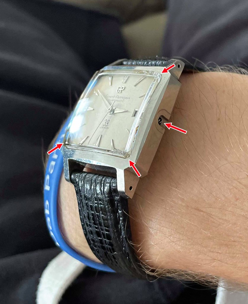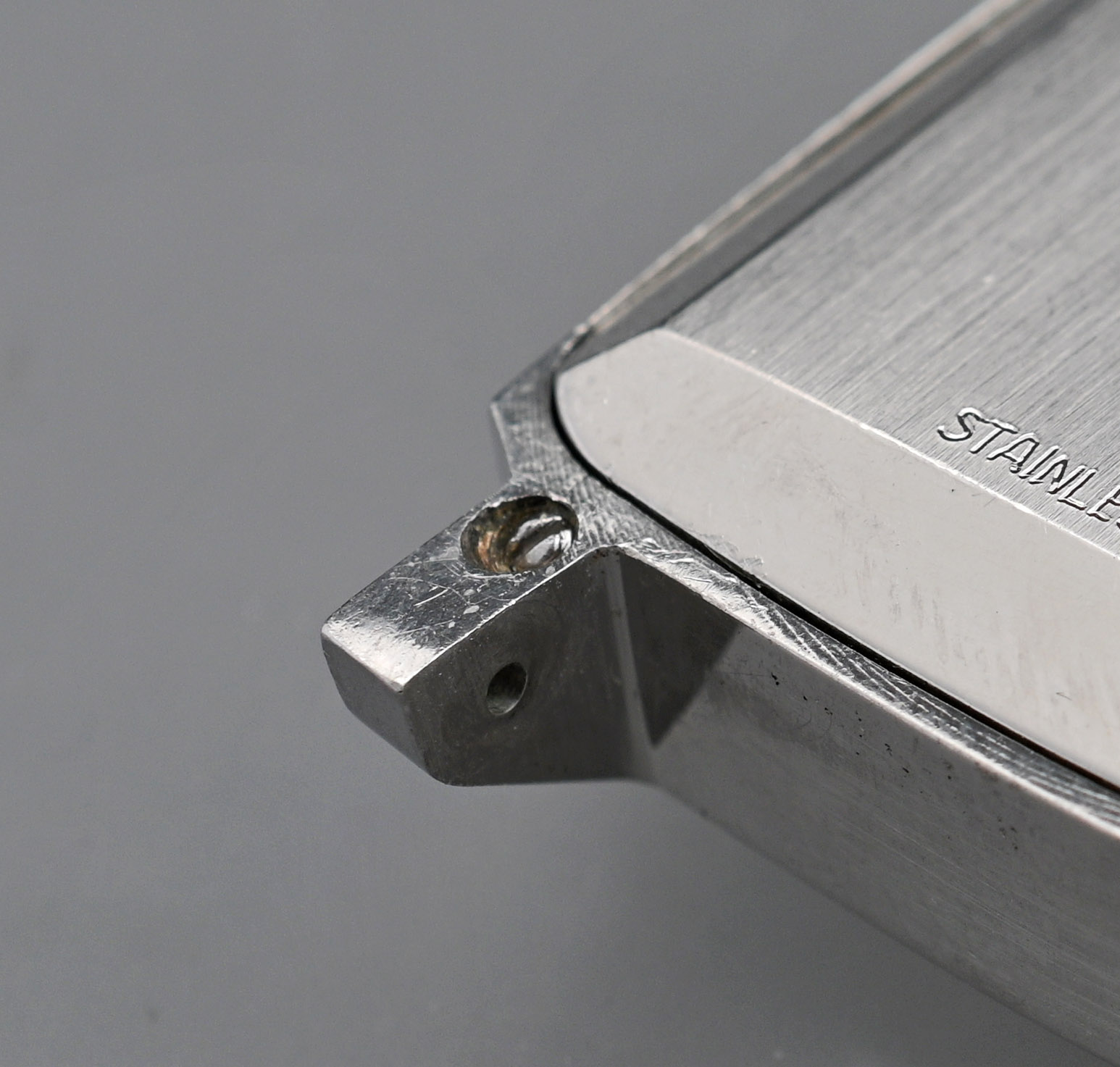 On the upside, the damage will, in practice, be obscured from view by the distortions provided by the corners of the square acrylic crystal and so I was optimistic that on the wrist, the flaws would not be especially apparent.