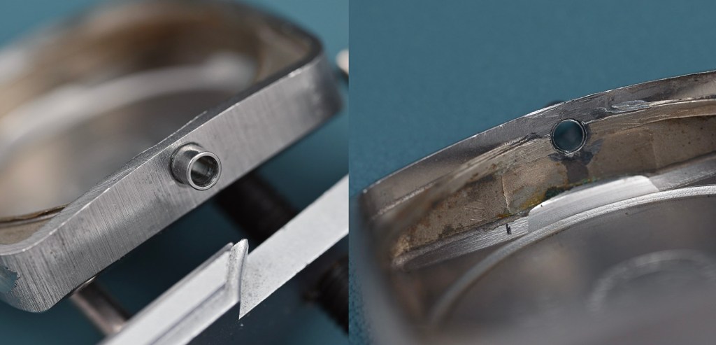 The reaming of the case carried with it a degree of hazard but I managed to accomplish the task satisfactorily and fit the new pendant tube, secured using some Loctite 638 retaining compound.