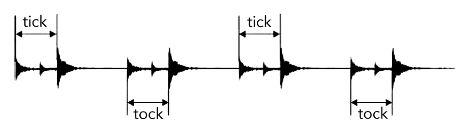 The timegrapher measures the rate at which the watch is running by recording the timing of the sounds that the escapement makes as the balance wheel, pallet fork and escape wheel perform their synchronised dance. The machine has a sensitive microphone that can detect the beat noise associated with each tick and tock of the movement. Each of these percussive sounds derives from three dominant sounds associated with 1) the impact of the impulse jewel as it makes its initial contact with one side of the pallet fork, 2) the sound of the exit pallet stone as it releases from a tooth on the escape wheel and 3) the almost simultaneous meeting of one of the teeth on the escape wheel with the locking plane on the entry pallet stone and the contact of the pallet fork arm with one of the two banking pins.
