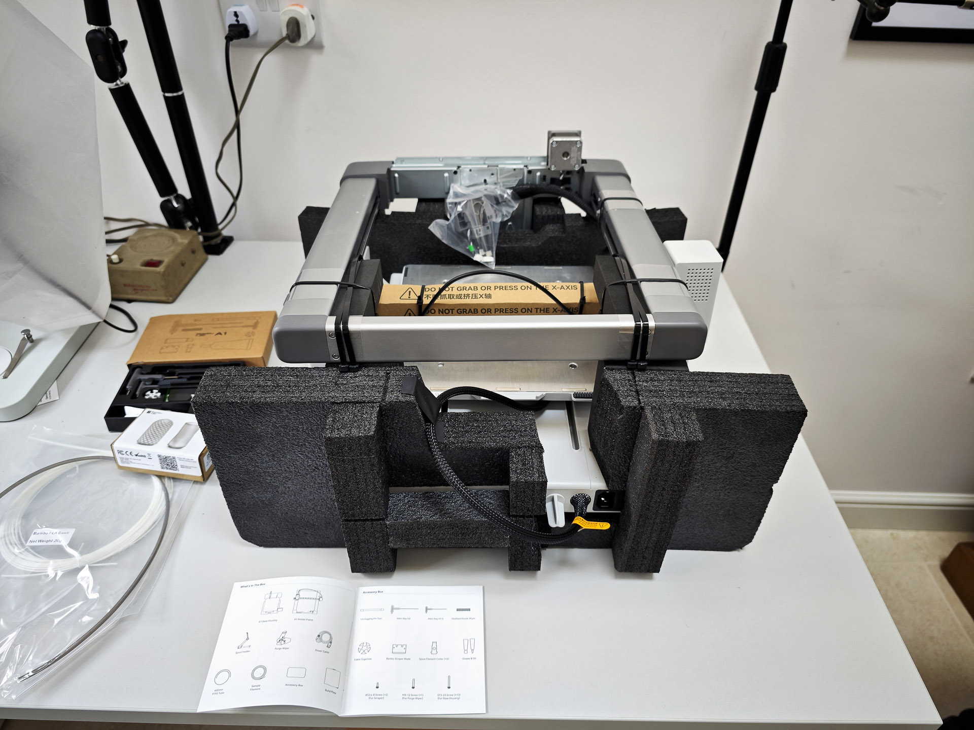 I started the build in June 2024 by taking delivery of an unsealed 390 x 390 mm steamed beech veneered MDF base board and sealing it in several coats of clear satin varnish. That having been done, I then proceeded to do nothing at all, not even open the 3d-printer box until March of this year. Opening the package from Bambu Labs was therefore the catalyst to getting the project proper underway.